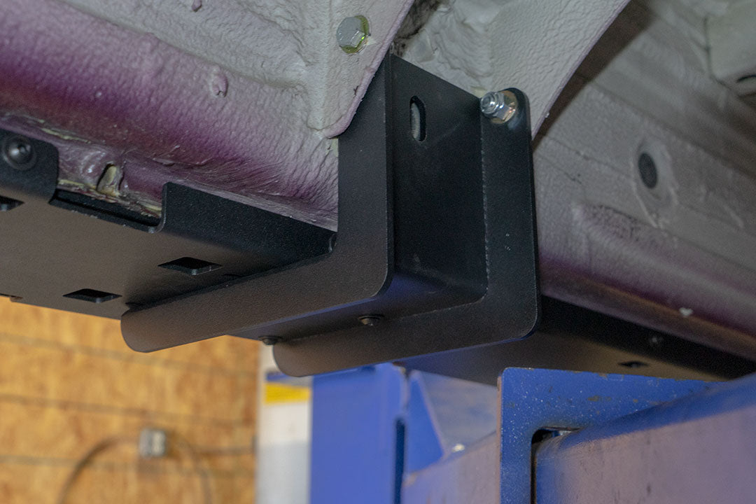 The main step surfaces are constructed from 1/8" steel and attach to the pinch seam with stainless steel hardware. Frame mounts are constructed from 3/16" steel and are attached in three locations directly to the vehicle's chassis. This additional reinforcement not only ensures a safe and solid mounting location, but increases torsional rigidity in the chassis of the vehicle. Drilling of holes at the pinch seam and under body gussets are required for installation.