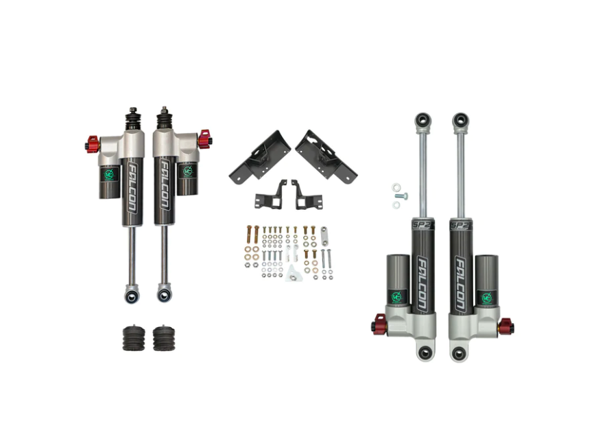The cornerstone of our Stage 2.3 kit is the 4-corner, adjustable Falcon 3.3 Fast Adjust Shocks with their huge range of compression adjustment available at the simple flip of a large, easily accessed Fast Adjust knob. This allows you to quickly adjust from the softest to firmest settings over a significantly larger range than the competition's smaller adjusters. A larger range of adjustment means the shocks are more effective and adaptable to multiple modes of use.